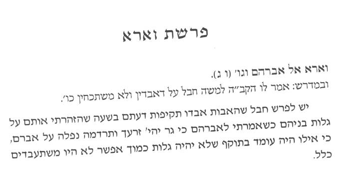 “It is a shame that the forefathers lost their strength at the time that I (God) warned them about the exile of their children. When I said that your children will be sojourners in a strange land and right afterwards what happened, Avrohom fell into a deep sleep. If Abraham would have stood his ground with strength and firmly told God (or argue), no there will not be an exile, then it is possible that the Jews would not have gone into slavery.”